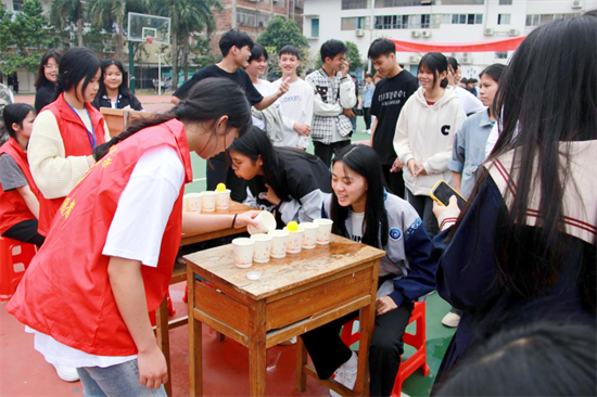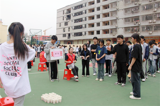活动中不仅有节目表演,还设置了游戏环节,让同学们积极参与到当中,设有高杆抛绣球、盲人打鼓、吹气球等15项内容丰富、形式新颖的民族趣味游戏。现场热闹非凡,到处都洋溢着同学们的青春笑脸与欢声笑语,使得校园里充满着生机活力。参加活动的各民族师生在热烈的氛围中感受广西民族文化的魅力与非物质文化遗产的博大精深和源远流长。