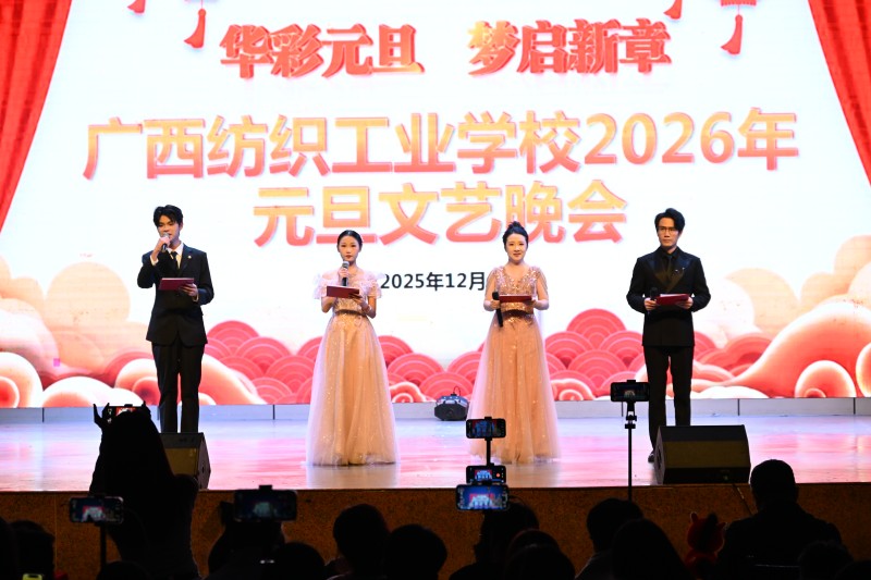 欢声笑语辞旧岁,华彩飞扬迎新春。12月25日晚19:00,广西纺织工业学校“华彩元旦 梦启新章”2026年元旦文艺晚会在学校清川校区文体综合馆隆重举行。学校蒋智忠校长,李昭文副校长、马宇丽副校长、巴亮副校长,以及全体中层干部出席活动,与千余名师生代表共襄盛会,同贺新年。晚会还通过抖音平台同步直播,让未能到场的师生与家长共享这场视听盛宴。