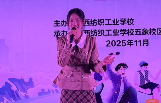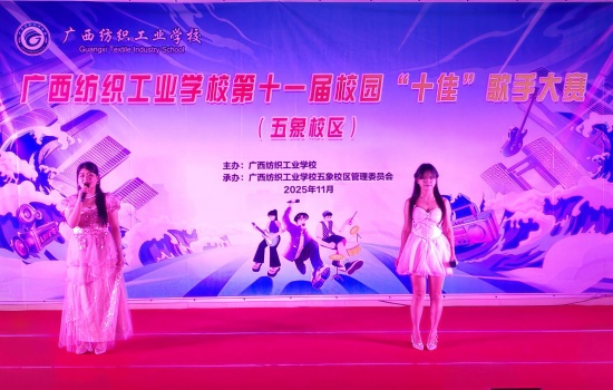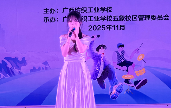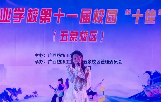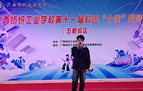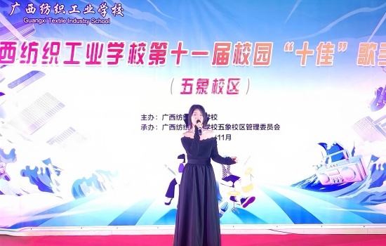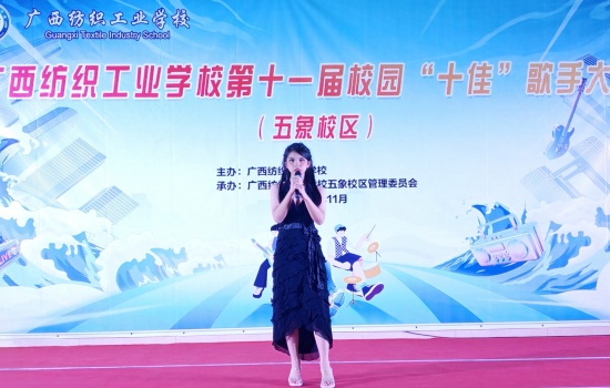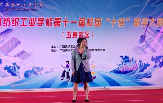 为丰富校园文化生活,展现五象校区学子青春风采,近日,广西纺织工业学校第十一届“十佳”歌手决赛(五象校区)在校区礼堂激情开唱。 校区师生代表齐聚现场,共同见证校园“歌王”的诞生。